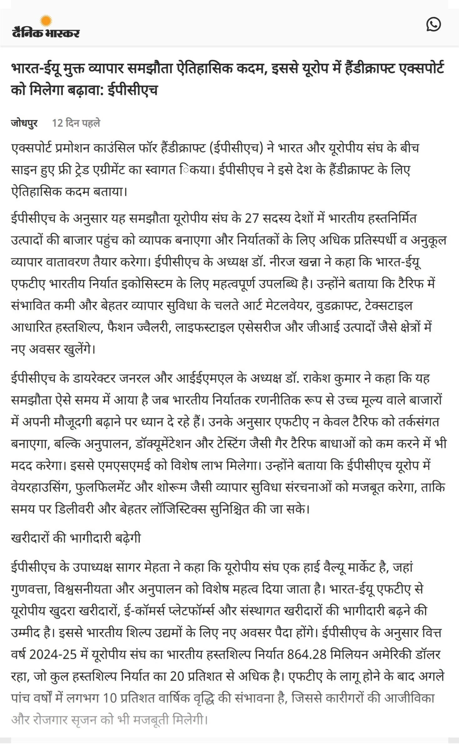Handicraft Sector Rates